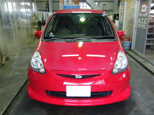 フロントスポイラーがクリアがまだらに剥げてしまい、なおかつボディー上面が退色してしまったので、剥げたスポイラーは塗装で、退色したボディーはフル研磨とコーティングで対応・・という事になりました。 フル研磨でウォータースポットやらスクラッチやらは綺麗に取れたのですが、クリヤ下の原色赤が退色してしまっていたため、原色復帰は残念ながら無理でした・・。ホンダさんのクリヤ有りの赤は、日焼けでひどく退色してしまいますので、手遅れになる前にぜひプロショップATCのカーコーティングをお勧めします☆