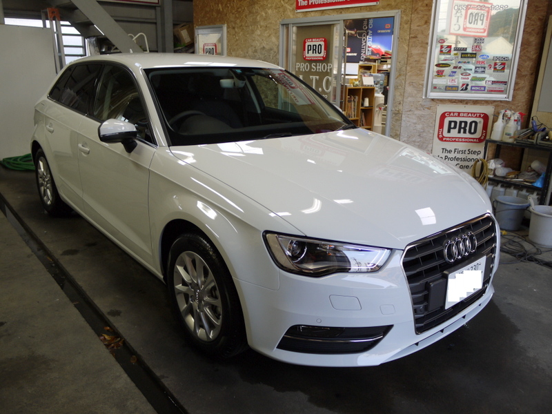 PROガラスコーティングPCX-S7・フロントガラス撥水コートPGS-33施工 アウディA3スポーツバック