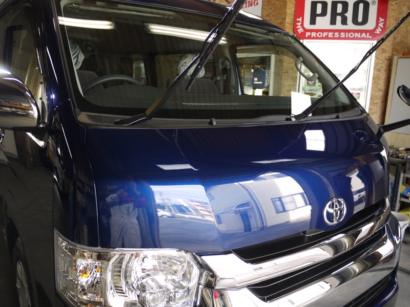 PROガラスコーティングPCX-S7・フロントガラス撥水コートPGS-33施工 トヨタハイエースワゴン(10人乗り)
