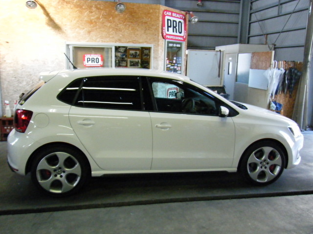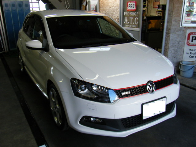 以前からの親しいお客様です♪ 今回車を買い替えたため、コーティング(PCX-S7)とカーフィルムを施工させていただきました☆ 以前乗っていたイプサムの時も、同じようにコーティング+カーフィルムを施工させていただき、その効果を実感されていたので、納車翌日に速攻で持ち込んでいただけました♪ ボディーコートはもちろんのこと、フロント2面の透明断熱フィルムの効果もかなり気に入っていただき、お得意様価格でかなり割引いてもかなりの高額作業となりましたが、入庫前の見積もり時に即決で全ての作業のご注文をいただきました♪ 精悍な顔つきのホワイトボディのポロGTIが、異様に輝き、一層精悍な車に仕上がりました☆