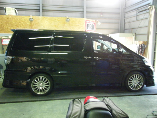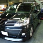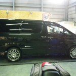 ブラックメタリックボディの先代のアルファードの入庫です。純正で可視光線透過率約30パーセントほどの色が入っていますが、NS008の施工で約3~4%ほどまで透過率が落ちます。 外から見るとほとんど真っ黒で中の様子は一切見えなくなりますが、透明度の高い東レのルミクールですから、車内からは外の様子がよく見えます♪ かなり真っ黒くしたいとおっしゃっていたお客様ですが、外観はもちろん車内からの見通しの良さもとても満足していただきました☆