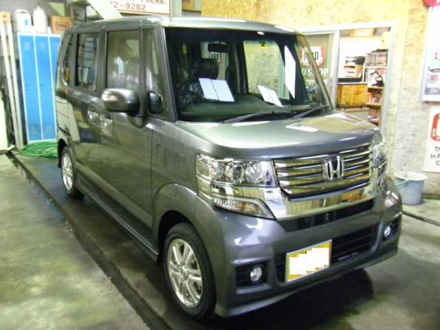 毎度のMモータース様からのご注文です♪ 遅ればせながらN-BOX当店初入庫となります☆ 発売以来大人気で、既に2~3ヶ月待ちだそうですね☆ 中でもこのカスタムが精悍な顔つきで人気が高いようです☆ ターボのラインナップも魅力的ですが、ターボはエコカー補助金の対象外だそうで残念ですね。。。室内高はステップワゴン以上だそうで、乗った感じも軽とは思えないほど広々としています☆ 磨き&PCX-S7の施工で、ガンメタのN-BOXカスタムがより一層輝き、どのN-BOXにも負けない光り輝くお車に仕上がりました☆