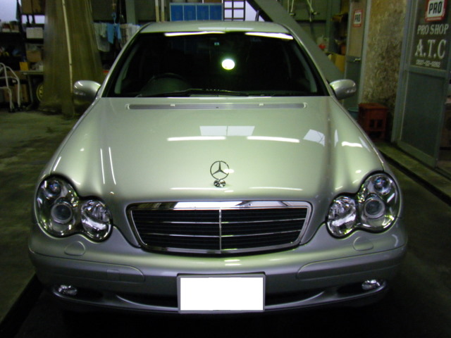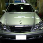 以前からお付き合いいただいているお客様です♪ 今回は2台のMベンツ(ともにCクラス)のお見積もりを頂き、まずは年式の古い方のお車をご入庫いただきました☆ 車庫保管ということで、塗装がひどく荒れているといった感じではなかったのですが、さすがに経年劣化には勝てず、照明がぼやけてしまう塗装表面のボケがひどく、なおかつ洗車傷もかなり深く入っていました。。。水性塗装になって柔らかくなったとはいえ国産車に比べてかなり固めのMベンツのシルバーを一気に研磨していきます。ボケは比較的早く取れたのですが、洗車機で入っただろう深い洗車傷がしつこく残ります。。。塗膜の状態を確かめながら研磨を進めていき、洗車傷がほぼ見られなくなったところで入念に仕上げを施した後にPCX-S7を施工していきます。 場内の景色が映りこみすぎるほど艶々と光り輝くCクラスが出来上がりました☆ ホイールコーティングで純正ホイールも光り輝いています☆