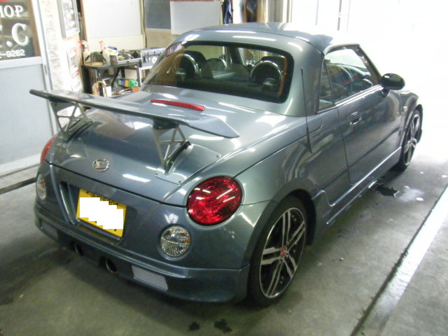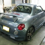 お馴染みのお客様のご紹介でご来店いただいたお客様です♪ 夏のボーナスにあわせ、計画中だったカスタムを進めたいということで、今回はフロントエアロバンパー(ウィンカーはRX-7のものを使用)・サイドステップ・リヤバンパースポイラーを仕入れ、塗装・加工した上で取り付け・仕上げまでをさせていただきました☆ エアロの銘柄はPandora社製のもので、発注から約2週間で部品が納入され、そこから塗装・加工・取り付けとなり完成まで約3週間。 もともと取り付けてあった大型のリヤウィングもあって、バリバリのミニスポーツに生まれ変わった感じです☆