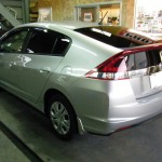毎度のAモータース様からのご注文です♪ 今回施工させていただくお車はホンダのハイブリッドカーの代表格であるインサイトなんですが、驚くことに当店初入庫となります♪ ホンダカーズ御前崎西様での出張作業では何台も施工させていただいているのですが、当店ピットでのフィルム施工は初だったわけです☆ 今回も一番濃いやつで!というご注文でNS008をチョイスして施工させていただきました☆ 透明度の非常に高い東レのルミクールですから、外観は真っ黒に見えながらも車内からの視界は良好な状態を確保しています☆